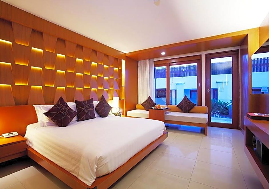 Located on the ground floor, room features direct pool access.